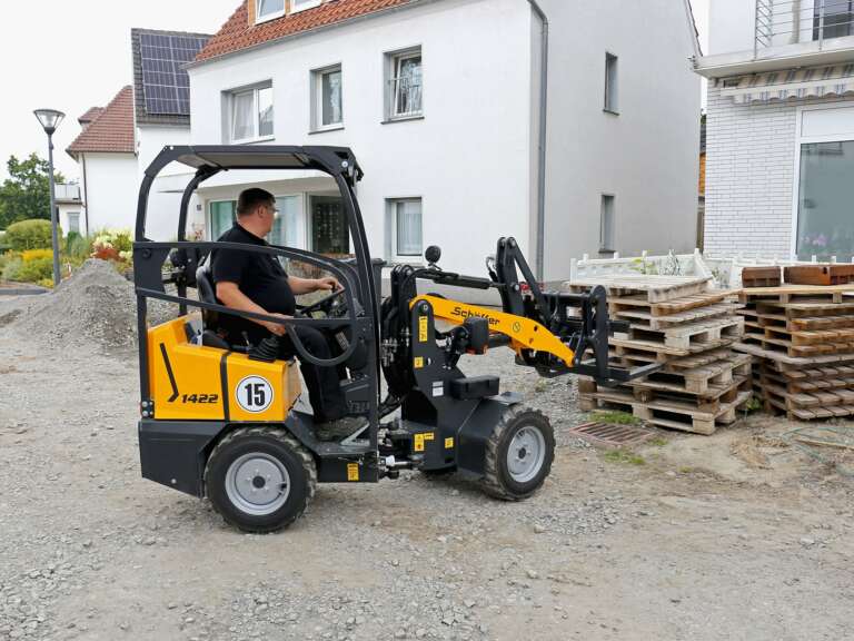 Schäffer 1422 on kompakti ja ketterä pienkuormaaja ahtaisiin työympäristöihin. 1 250 kg käyttöpaino, 810 kg nostovoima ja 2 230 mm nostokorkeus tekevät siitä tehokkaan ratkaisun materiaalinsiirtoon, pihanhoitoon ja kevyisiin työmaatehtäviin.