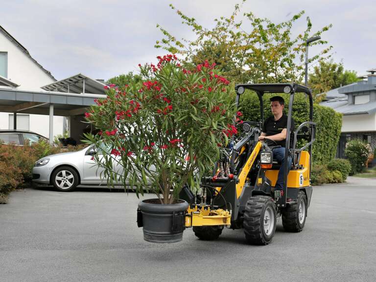 Vakiona parallel lift, hydraulinen työlaitelukitus ja laaja lisälaitevalikoima tekevät koneesta joustavan työkalun ympäri vuoden.