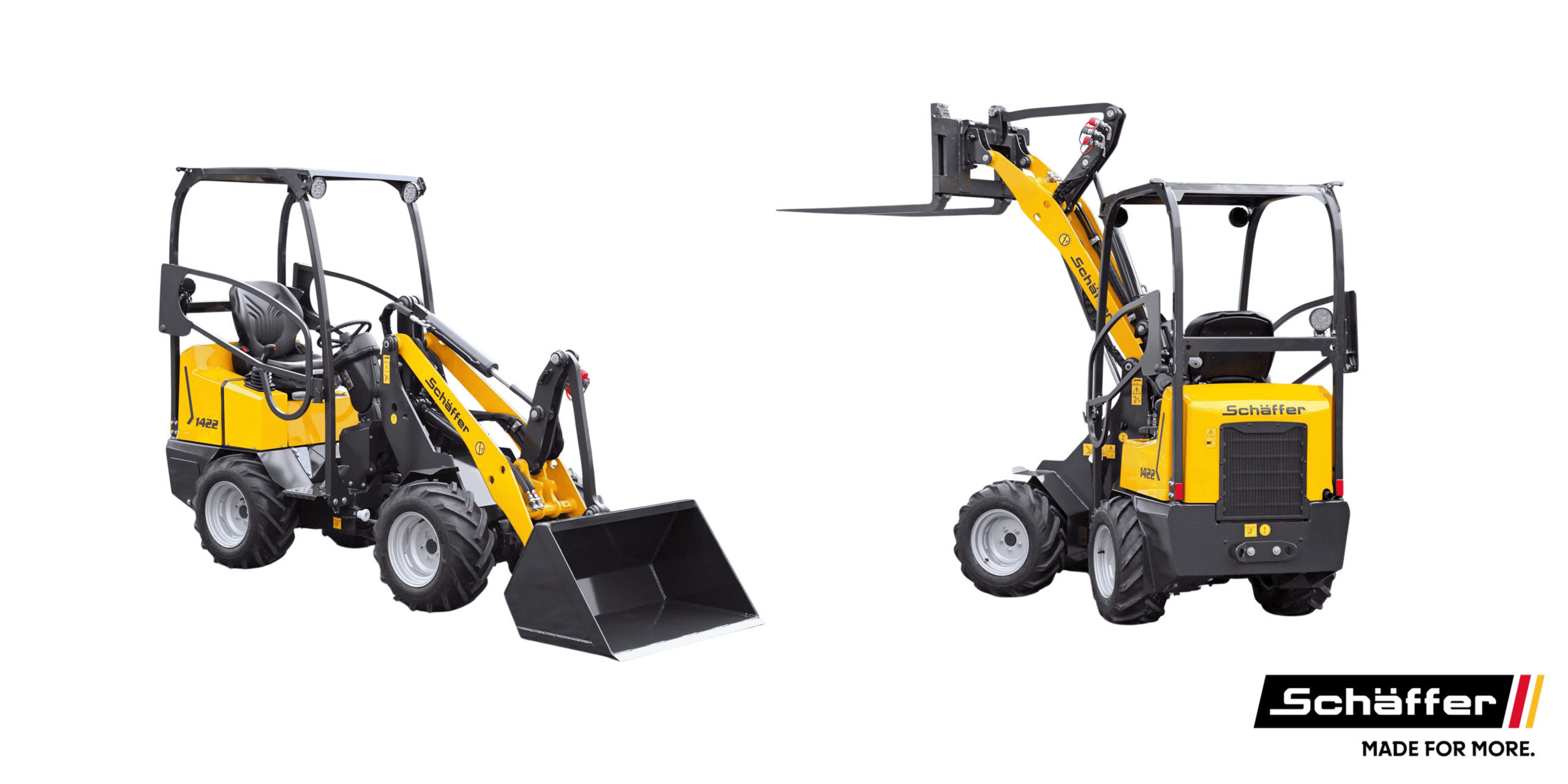 Schäffer 1422 on ketterä ja kompakti pienkuormaaja rakennus-, kiinteistönhoito- ja maatilakäyttöön. 1 250 kg käyttöpainollaan, 2 230 mm työlaitekiinnikkeen nostokorkeudella ja 600–800 kg suuntaan nähden suoran kaatumakuorman (haarukka/kauha) arvoilla se sijoittuu pienimpään kokoluokkaan, jossa ketteryys ja matala kokonaiskorkeus ovat valtteja ahtaissa ympäristöissä.