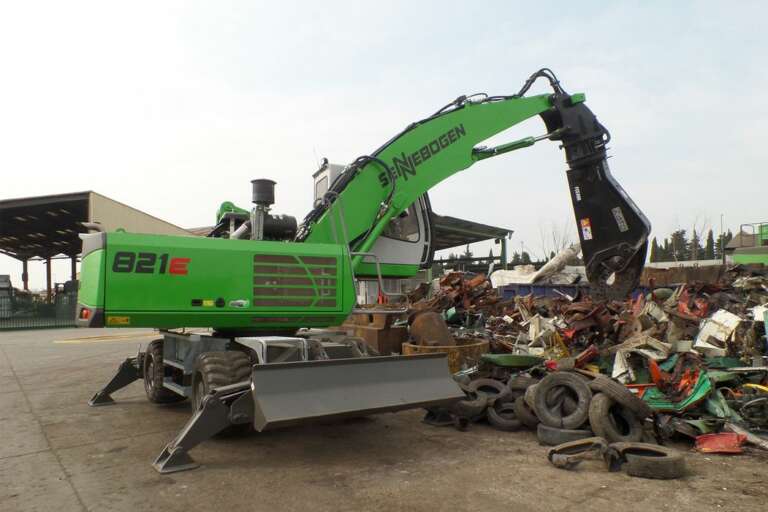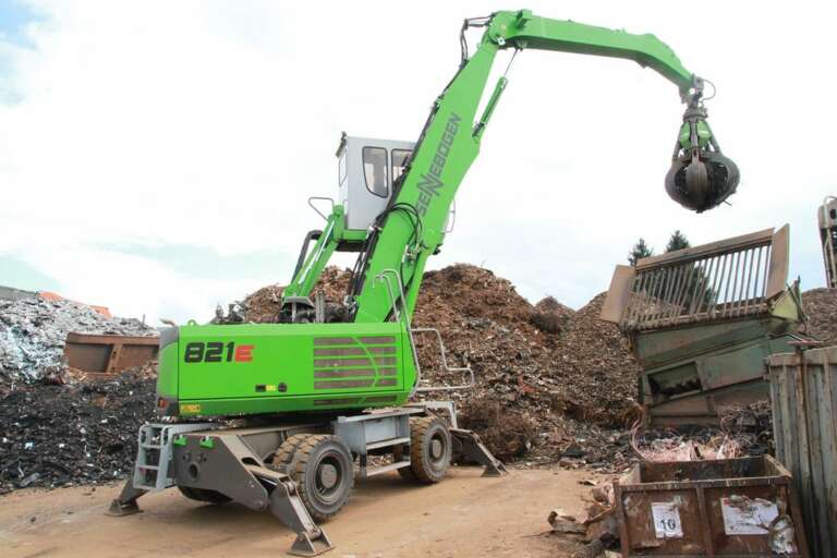 SENNEBOGEN 821 E on tehokas ja monipuolinen materiaalinkäsittelykone, josta on saatavana sekä pyöräalustainen 821 M E että tela-alustainen 821 R E. Molemmat mallit on suunniteltu raskaaseen materiaalinkäsittelyyn, kuten kierrätys- ja romumateriaalin sekä puutavaran kuormaukseen, lajitteluun ja prosessilaitteiden syöttöön. Tyypillisiä työlaitteita ovat romukourat, kahmarit, lajittelukourat ja magneetit.