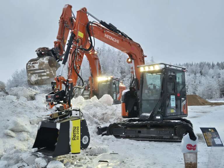 Kilpailussa ajetaan Hitachi ZX95US-7 -kaivinkonetta REMUn seulakauhalla.